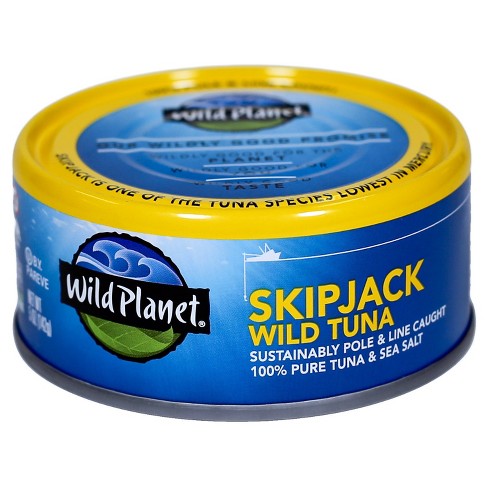 I like that skipjack is less prone to mercury content than the larger tuna species. Recently came across the skipjack wild tuna by wildplanet and did a comparison to other branded skipjack by far the wildplanet brand is delicious. Wild planet skipjack wild tuna is hand packed raw into cans without added oil water or f. Frequently referred to as light tuna wild planet skipjack tuna is 100 pole and line caught one fish at a time the method deemed best choice for sustainability by the monterey bay aquarium seafood watch program.